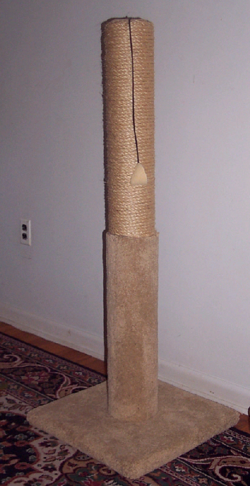 A 14 lb. cat hanging from a 4 ft. pole.